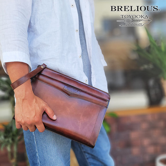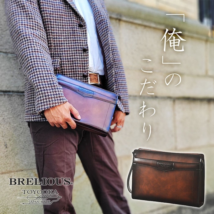 クラッチバッグ セカンドバッグ メンズ ブランド 日本製 豊岡製鞄 フォーマル 大開き 結婚式 黒 チョコ BRELIOUS KBN25947