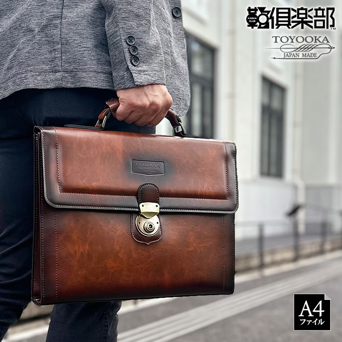 ビジネスバッグ ブリーフケース A4ファイル 日本製 豊岡製鞄 メンズ 薄マチ スリム 白化合皮 YKKファスナー 縦型 レトロ ヴィンテージ 黒 キャメル KBN26674 BRELIOUS