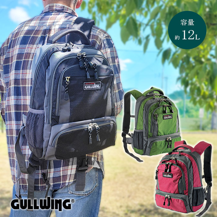 リュック デイパック A4ファイル メンズ レディース ファミリー 通勤 アウトドア 旅行 通学 災害 防災 黒 紺 赤 KBN42428 GULLWING