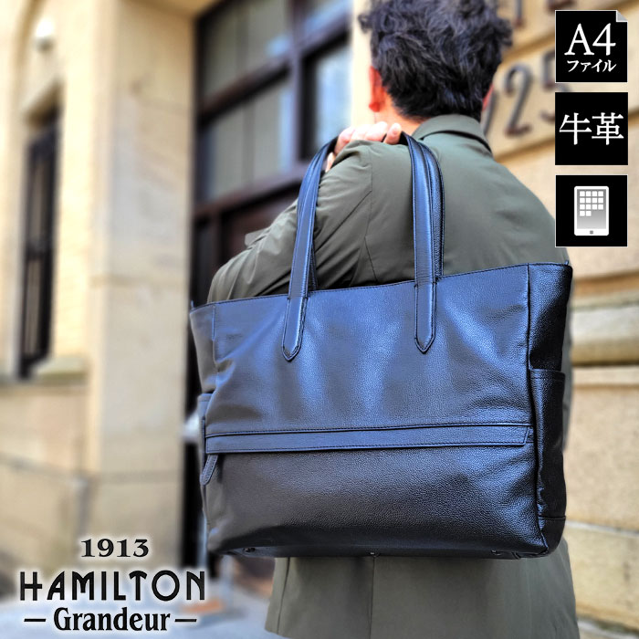 ビジネスバッグ トートバッグ レザーバッグ メンズ レディース A4ファイル 牛革 カジュアル 横型 黒 KBN53426 ハミルトングランジャー HAMILTON -Grandeur-