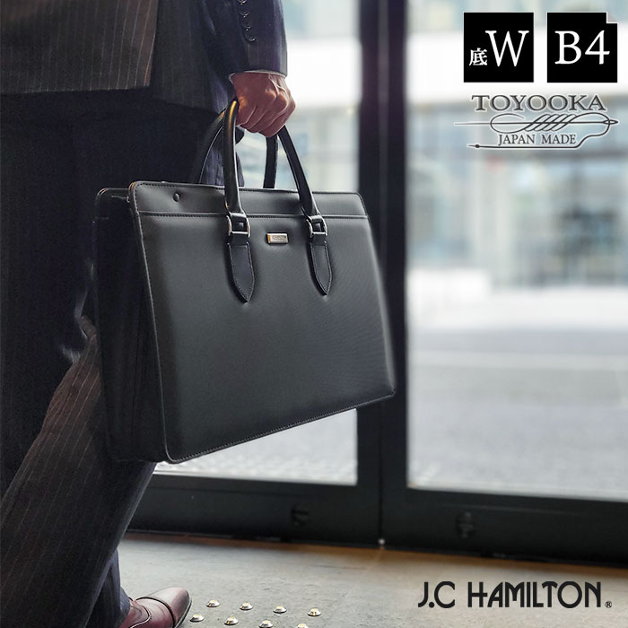 ビジネスバッグ ブリーフケース 日本製 豊岡製鞄 メンズ B4 横 自立 牛革製ハンドル 通勤 黒 KBN22356 J.C HAMILTON