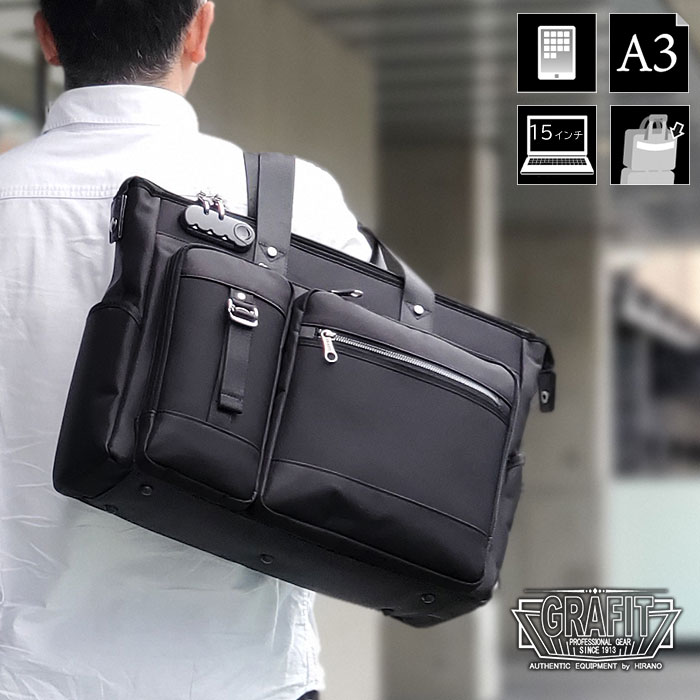 ビジネスバッグ ブリーフケース トートバッグ メンズ A3 ダイヤルロック付き タブレット対応 キャリーオン 通勤 出張 黒 ブランド GRAFIT グラフィット KBN26687