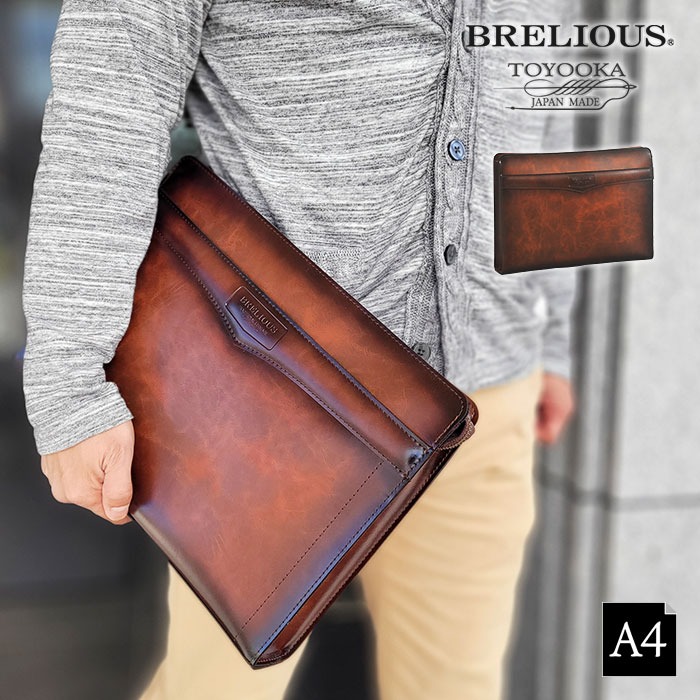 セカンドバッグ クラッチバッグ 日本製 豊岡製鞄 メンズ A5 レトロ シャドー カジュアル フォーマル 結婚式 チョコ BRELIOUS KBN25924