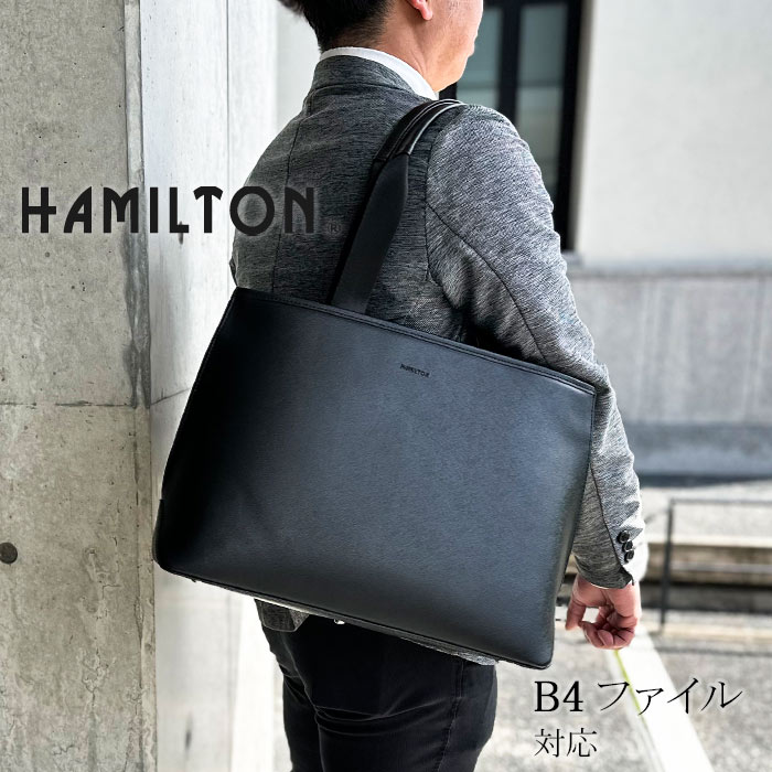 トートバッグ ビジネスバッグ メンズ B4ファイル 黒 サフィアーノレザー調 横 横型 タブレット対応 フォルム シンプル 大容量 HAMILTON KBN53440