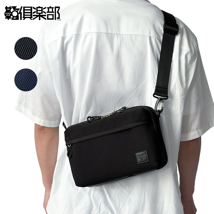 ショルダーバッグ メンズ 軽量 2層 斜めがけ かっこいい カジュアル アウトドア 旅行 横型 メッシュ風 黒 紺 Mobby's KBN33794