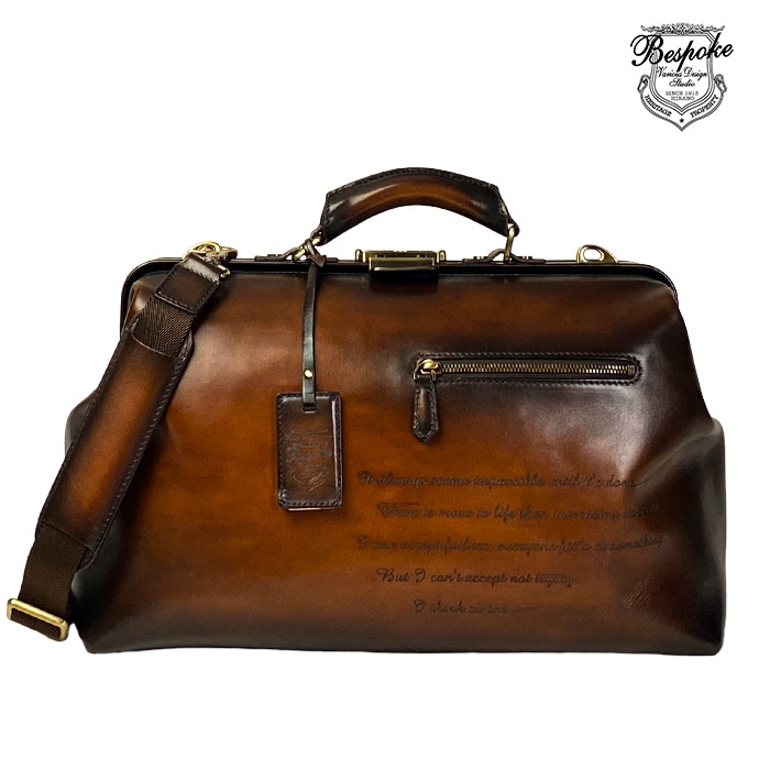 ダレスバッグ ボストンバッグ 牛革 レザー メンズ A4サイズ 横 横型 鍵付き ショルダーベルト付き チョコ ヴィンテージ 経年変化 プレゼント 化粧箱 【Bespoke Various Design Studio】 KBN10434