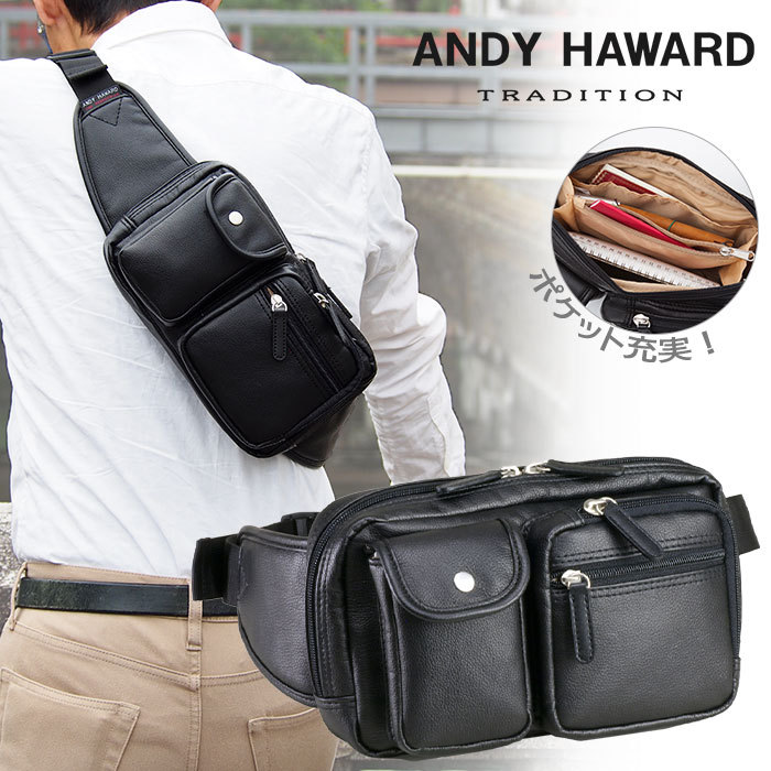 ウエストバッグ ウエストポーチ メンズ ソフト 多用途ポケット付き KBN25718 アンディハワード ANDY HAWARD