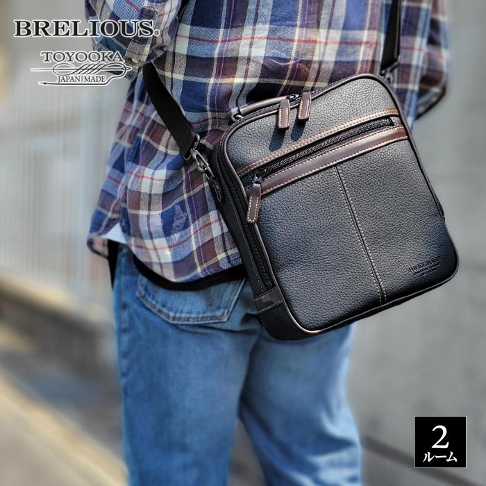 ショルダーバッグ カジュアルバッグ 日本製 豊岡製鞄 縦 縦型 2層 合皮 シボ加工 黒 カジュアル メンズ 普段使い A5対応 BRELIOUS KBN16432