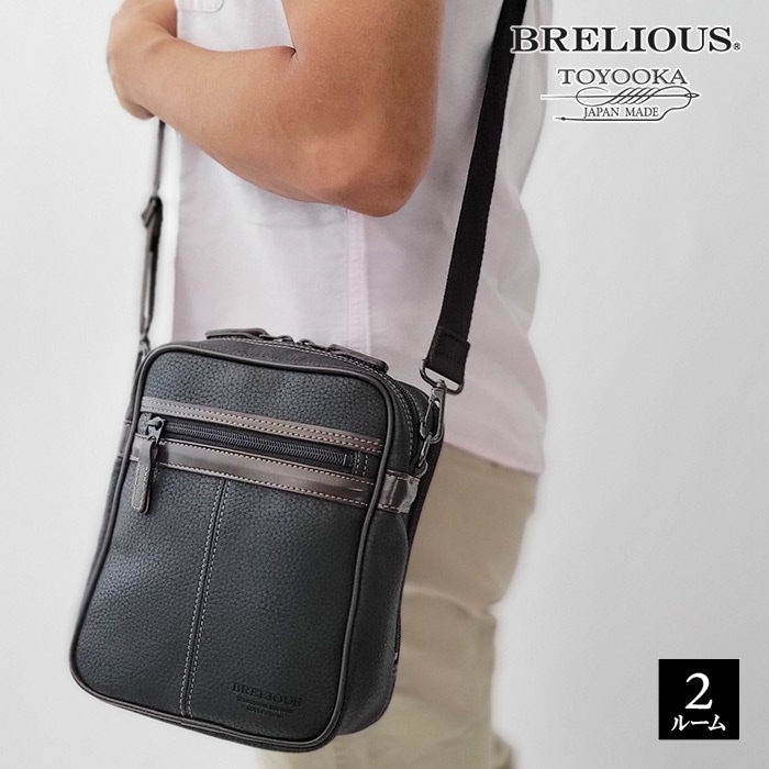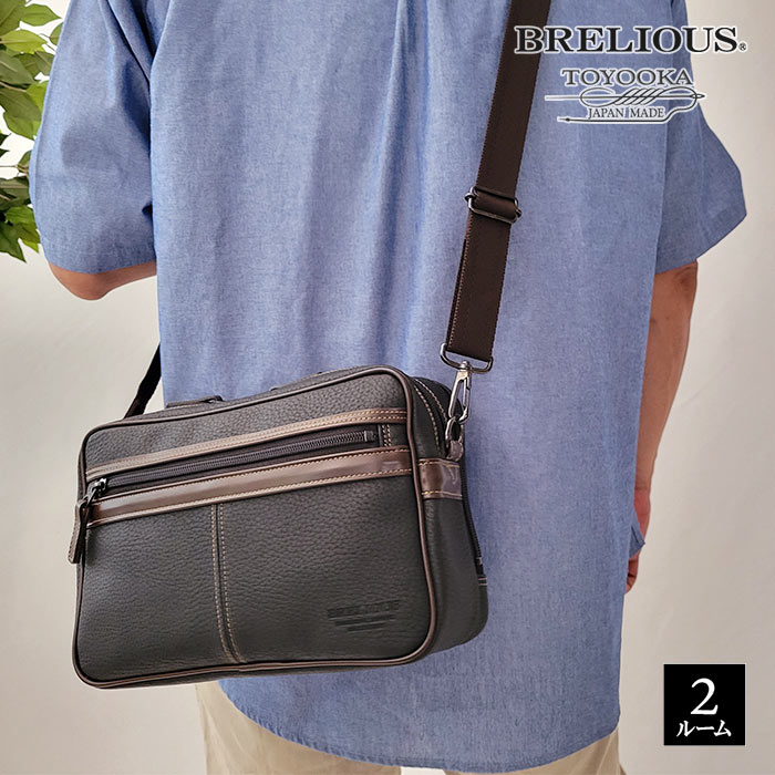 ショルダーバッグ カジュアルバッグ 日本製 豊岡製鞄 横 横型 2層 合皮 シボ加工 黒 カジュアル メンズ 普段使い A5対応 BRELIOUS KBN16430