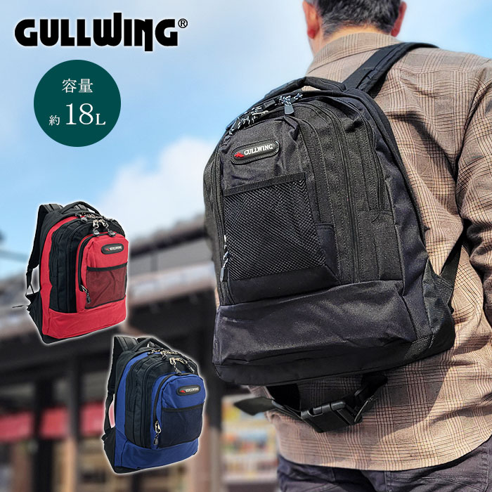 リュック デイパック A4ファイル メンズ レディース ファミリー 通勤 アウトドア 旅行 通学 災害 防災 黒 紺 赤 KBN42428 GULLWING