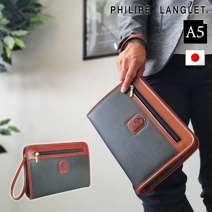セカンドバッグ セカンドポーチ クラッチバッグ 日本製 国産 豊岡製鞄 メンズ A5 ボンディング合皮 旅行 結婚式 黒 カーキ PHILIPE LANGLET KBN25937