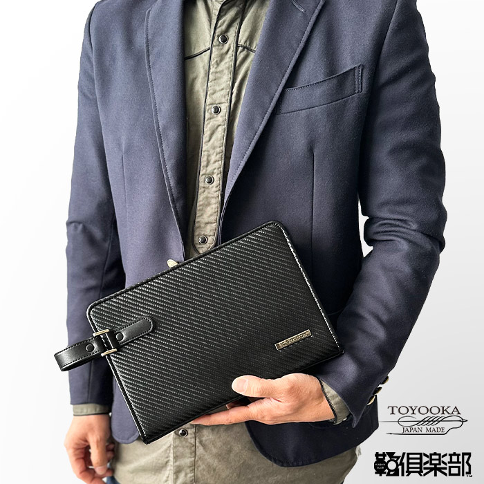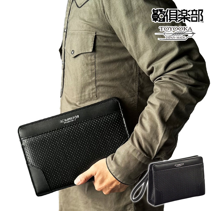クラッチバッグ セカンドバッグ メンズ 日本製 豊岡製鞄 ハンドル ストラップ カジュアル フォーマル 軽量 カーボン調 横 縦 ギフト J.C HAMILTON KBN25962