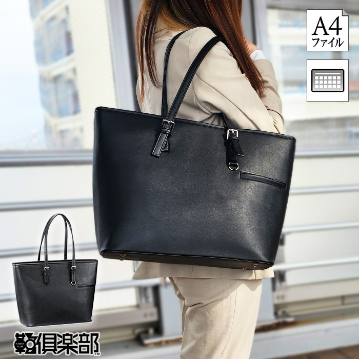 トートバッグ ビジネスバッグ メンズ B4対応 黒 サフィアーノレザー調 横 横型 フォルム 大容量 HAMILTON KBN53433
