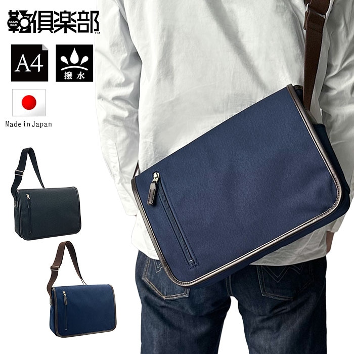 ショルダーバッグ メンズ メッセンジャーバッグ 撥水 A4 日本製 豊岡製 斜めがけ フラップ シンプル 通勤 通学 横型 大人 ヘリンボーン へリンボン 黒 紺 BROMPTON KBN33787