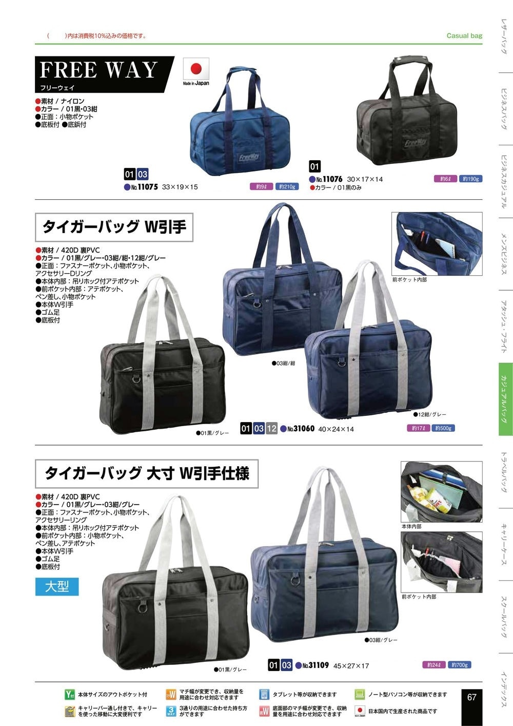フリーウェイタイガーバッグ W引手タイガーバッグ 大寸 W引手仕様
