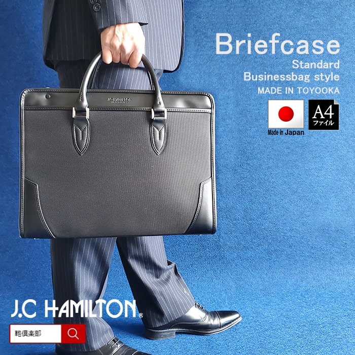 ビジネスバッグ ブリーフケース 日本製 豊岡製鞄 メンズ B4 横 自立 牛革製ハンドル 通勤 黒 KBN22356 J.C HAMILTON