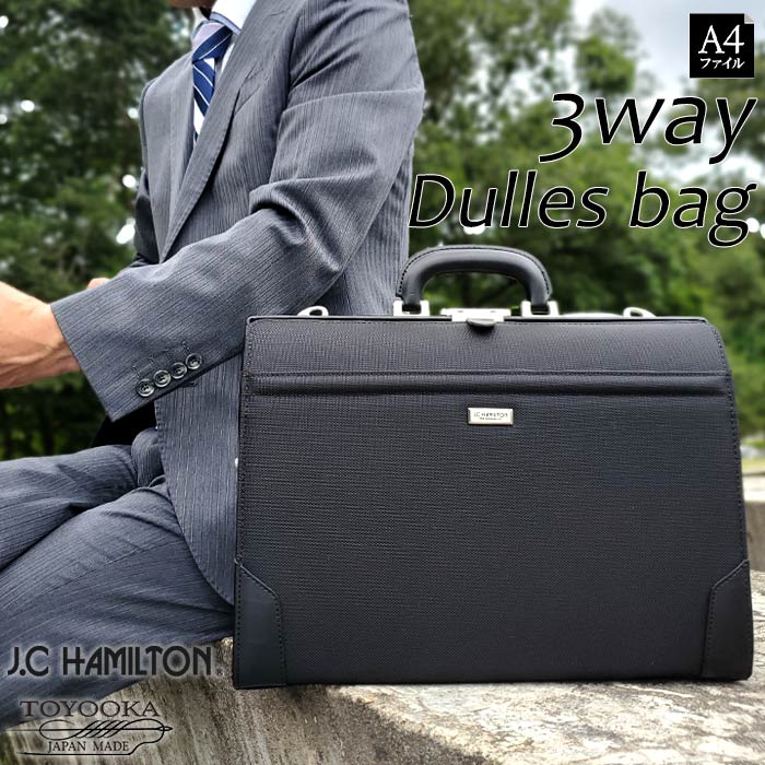 ダレスバッグ ビジネスバッグ メンズ A4クリアファイル 2way 日本製 国産 豊岡製鞄 横 横型 黒 J.C HAMILTON KBN22358