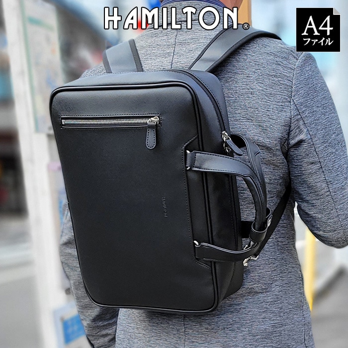 防災の日 ブリーフケース ビジネスバッグ リュック メンズ レディース A4ファイル 2WAY 黒 横 横型 着脱式中仕切り HAMILTON KBN26697